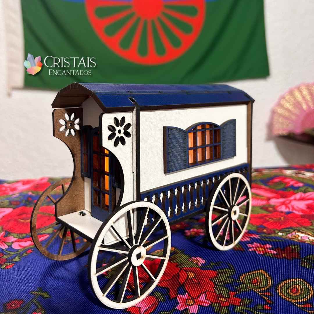 Carroça Cigana, consagrada com a energia do Clã Andarilhos. Luz interna, por bateria.