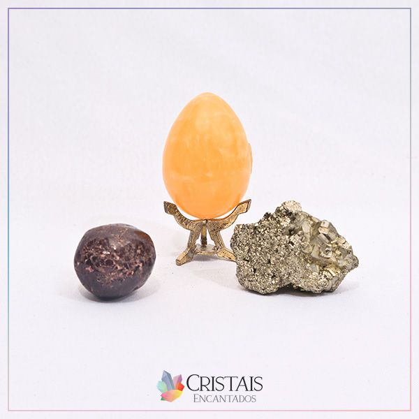 O kit de prosperidade contém Ovo de Calcita Mel (tamanho grande), Pirita e Granada. Proporciona abertura de caminhos na vida financeira, novas oportunidades profissionais e dinheiro inesperado. Aumenta a energia de abundância, faz o dinheiro render até o fim de mês. Potencializa simpatias para a vida financeira.