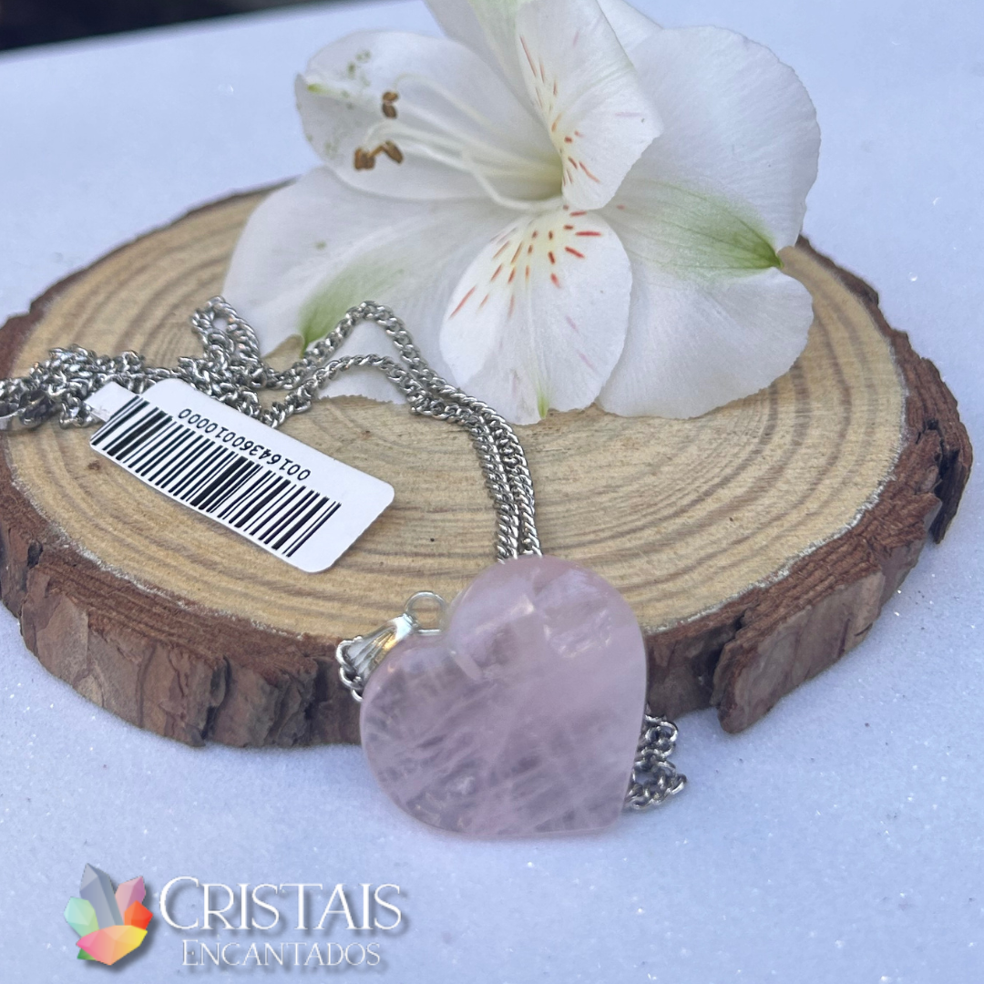 Pingente em formato de coração, lapidado em quartzo rosa. 🩷Amuleto das Ciganas do Amor, ajuda no processo de cura emocional, e atrai sorte no amor.